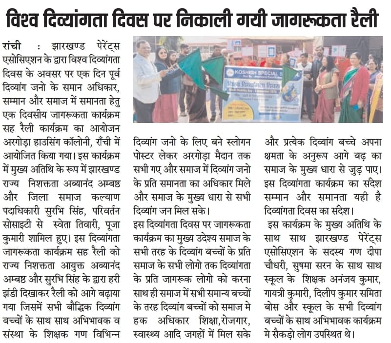 JHARKHAND PARENTS ASSOCIATION, RANCHI (KOSHISH SPECIAL SCHOOL) Conducted a Rally on World Disability Day 3rd December 2025